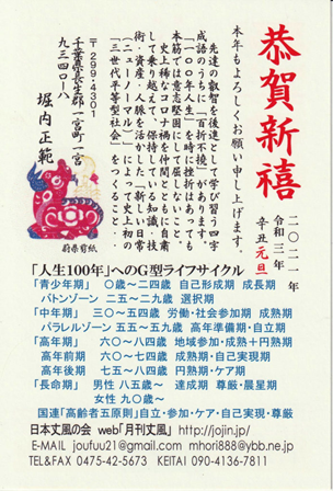 いまこそ、新たな世代として成立している「高年世代」が「青少年」「中年」とともに三世代現役による「新たな共生社会」の創建への出立の時なのです。本会はどこまでも広がる水玉模様のような活動の泉源のひとつとして新しい四半世紀へ向かいます。 この項お仲間に転送を