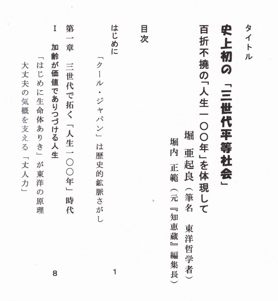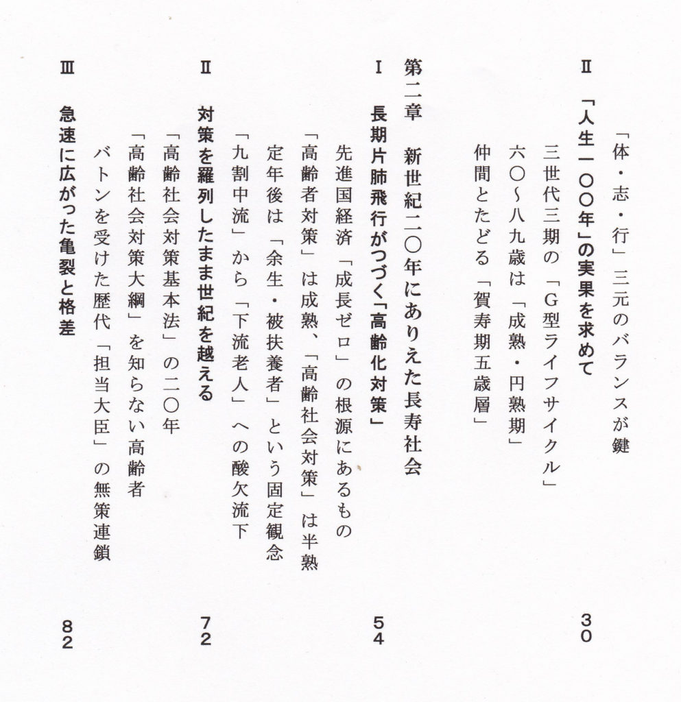 「人生100年」時代は、国民一人ひとりが青少年期(成長期)、中年期(成熟期)、高年期(円熟期)の「三世代三期」の活動期間を意識して、今をどう充実してすごすかを課題とする時代といえます。 とくにわが国は高齢者(65歳以上)が4人に1人(3500万人)をこえて新世代のボリュームに達して、世界初・史上初の「三世代社会」のモデル事例の形成を期待されています。 本稿は1999年「国際高齢者年」いらいのわが国の「高齢化」のありようを観察・検証してきた立場から、「三世代平等型の長寿社会」をさまざまな視点から提案しています。