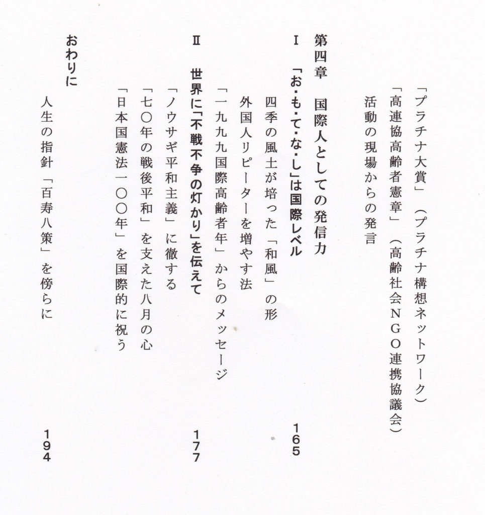 21世紀の国際的な潮流である「高齢化」。「人生100年」といわれる1世紀マラソンのトップランナーであるわが国の高齢者(65歳以上・約3500万人)。その中核に位置する80歳代のみなさんの円熟期の姿が見えなくては「日本長寿社会」が達成に向かっているといえません。