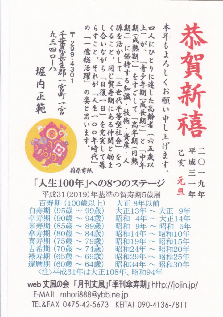 2019年平成31年年賀状